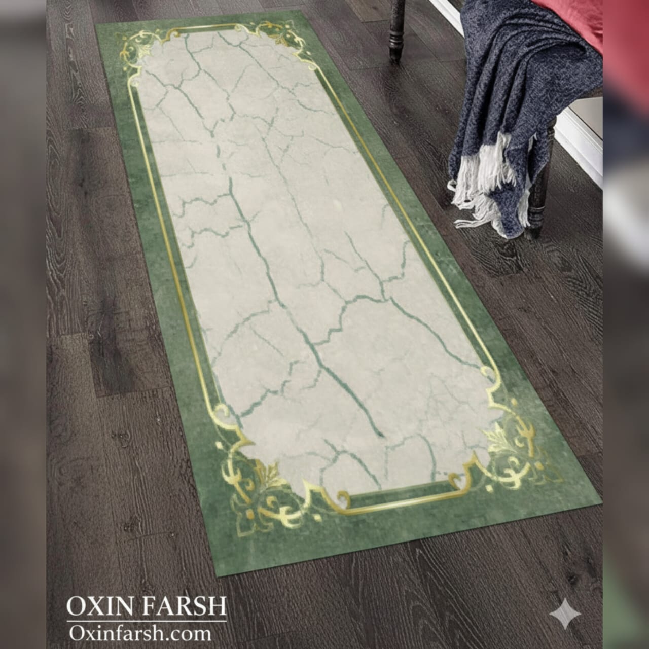 خرید فرشینه راهرویی کرم و سبز 😎✅کد 130+ ضمانت کیفیت 5 ساله