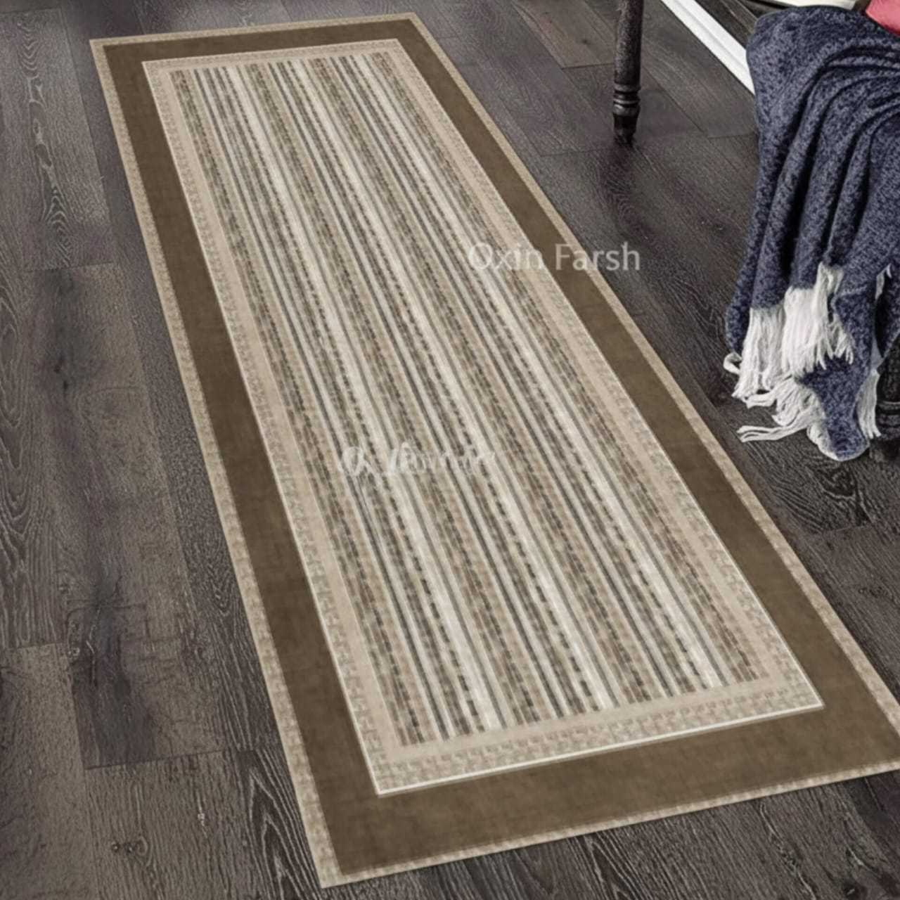 خرید فرشینه راهرویی کرم و قهوه ای مدرن 😎✅کد 157 + ضمانت کیفیت 5 ساله