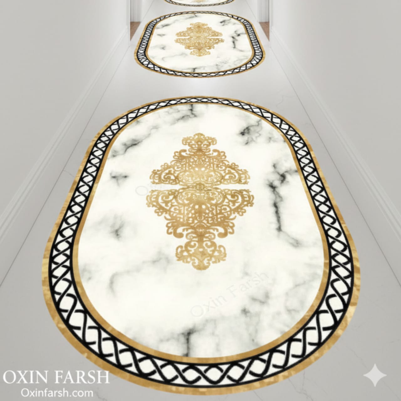 فرشینه راهرویی بیضی ضد لغزش 😍کد 6025 +5 سال ضمانت شست و شو