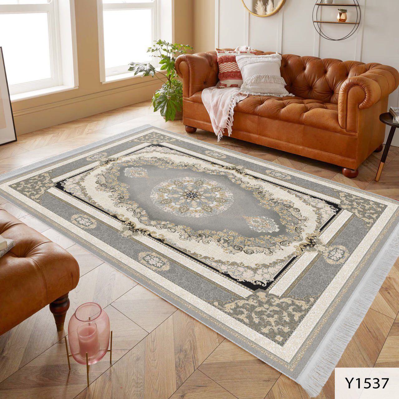 کاور فرش طوسی و کرم کشدار سالن پذیرایی طرح سوپرلاکچری❤️ کد1537 ( با ضمانت کیفیت)